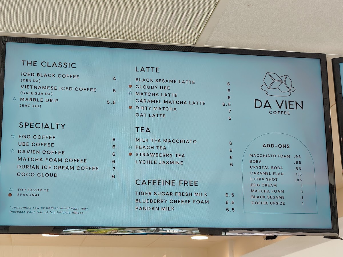 With a fast service model, you’ll find little to no wait time for your favorite caffeine fix. The baristas are friendly and attentive, ensuring that your experience from ordering to sipping your drink is seamless. Whether you come in for the rich flavors of the Vietnamese coffee scene or to enjoy a cool dessert on a hot day, the inviting space and delightful menu at Da Vien Coffee make each visit worth your while.